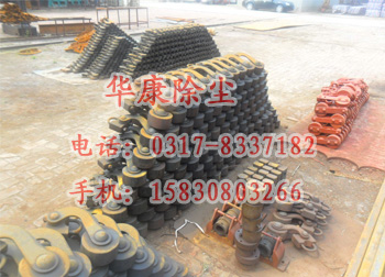 的軸扣采用的是將U型卡和與軸連接的軸卡兩個零件構(gòu)成,再將兩個零件焊接在一起,需要注意的是焊接而成的軸扣要_所要求的相對位置,使得組裝后的振打錘正確的打到要求位置。一般是一排極板安裝一個振打錘,同一電場各排的